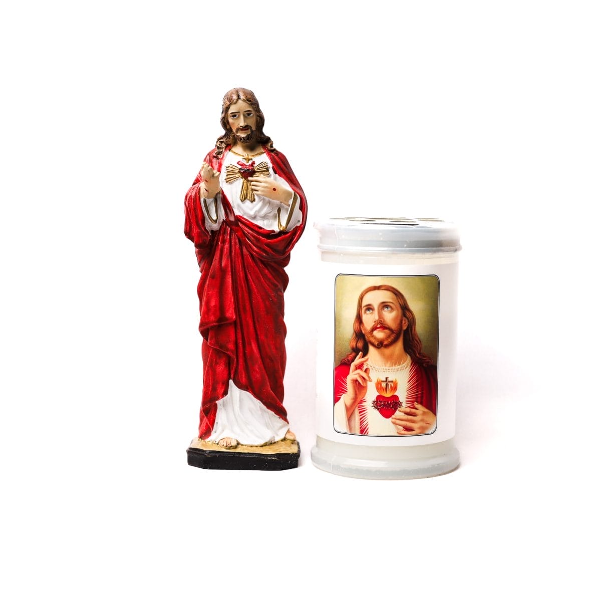 6” TRADITIONAL CLAY STATUE OF THE SACRED HEART OF JESUS – WITH SACRED HEART CANDLE WITH PRAYER
